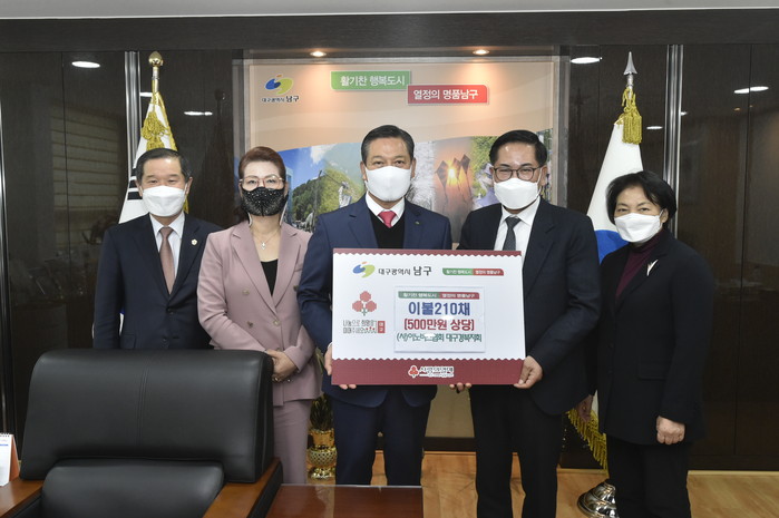 대구시 남구청(구청장 조재구)은 지난 8일, (사)이노비즈협회 대구경북지회(회장 천기화)에서 어려운 이웃의 따뜻한 겨울나기를 위해 이불 210채를 전달했다고 밝혔다.