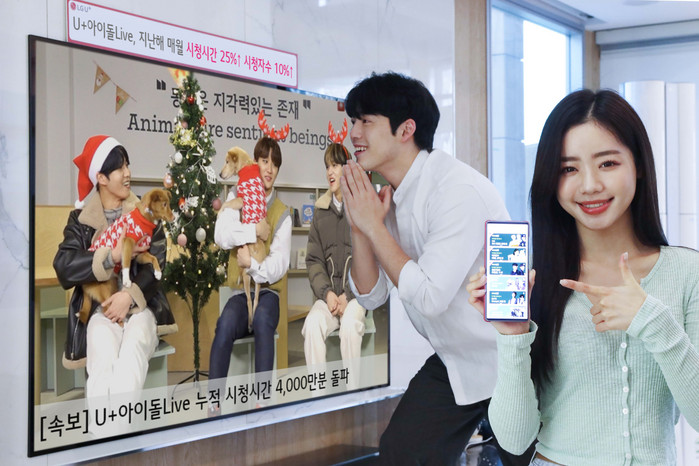 LG유플러스는 자사 아이돌 콘텐츠 플랫폼 ‘U+아이돌Live’의 누적시청 시간이 4000만분을 돌파했다고 4일 밝혔다. 16부작 드라마 5만편에 달하는 시간이다.