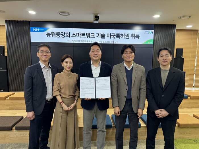농협중앙회(회장 이성희)는 독자기술로 개발한 농협 ‘스마트워크 기술’에 대해 작년 미국특허청(USPTO)에 특허출원하여 지난 6일 최종적으로 특허권을 취득했다고 14일 밝혔다.