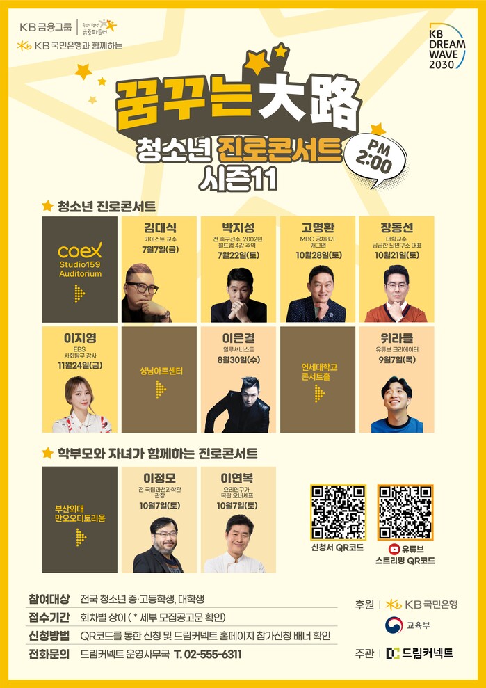 KB국민은행(은행장 이재근)은 청소년 진로콘서트 ‘꿈꾸는대로’ 시즌11을 개최한다고 밝혔다.