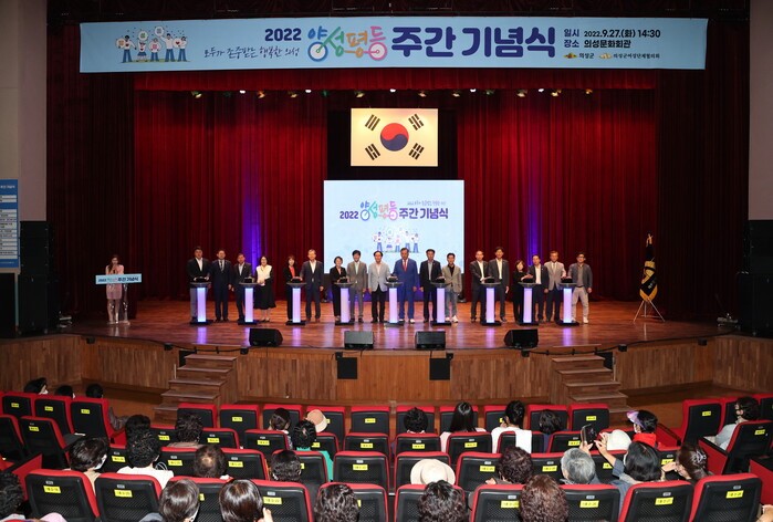 [로컬세계=박상진 기자]경북 의성군은 지난 27일 양성평등 주간을 맞아 양성평등의 의미를 일깨우고 공감대 확산을 위해 ‘모두가 존중받는 행복한 의성’이라는 슬로건으로 2022 양성평등주간 기념식을 개최했다고 28일 밝혔다.
