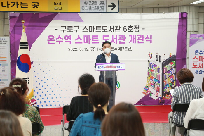 서울 구로구(구청장 문헌일)는 지난 19일 7호선 온수역 5번·6번 출구 사이 맞이방에 위치한 온수역 스마트도서관에서 문헌일 구로구청장과 도서관 관계자, 주민 등 30여 명이 참여한 가운데 개관식을 개최했다고 22일 밝혔다.