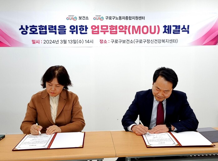 [로컬세계 = 임종환 기자]서울 구로구노동자종합지원센터와 구로구보건소가 지난 13일 관내 노동자의 마음 건강을 위한 업무 협약을 체결했다.