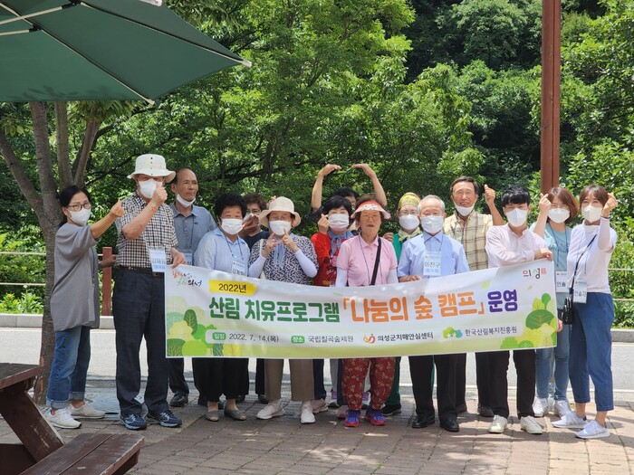 [로컬세계=박상진 기자]경북 의성군은 지난 14일 치매 어르신과 가족의 정서적 안정 및 힐링을 위해 한국산림복지진흥원(국립칠곡숲체원) 공모 선정된 산림 치유프로그램 ‘나눔의 숲 캠프’를 어르신들의 큰 호응 속에서 진행했다고 17일 밝혔다.