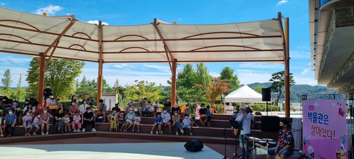 '박물관은 살아있다!'는 코로나 타파 물풍선던지기, 비누방울놀이, 전통민속놀이 등의 체험프로그램과 다양한 장르의 공연을 동시에 즐길 수 있어 방문객에게 호응도가 매우 높은 프로그램이다.