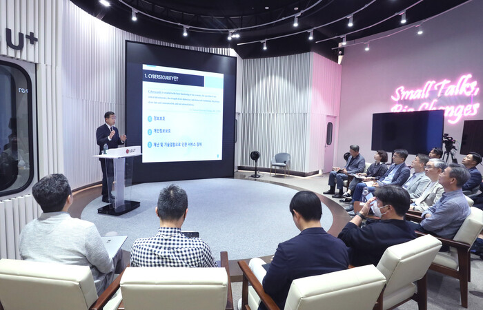 26일 용산본사에서 열린 이날 특강에는 LG유플러스 황현식 CEO(사장)와 최근 선임된 홍관희 CISO(최고정보보호책임자)를 비롯해 20여명의 경영진들이 자리했다.