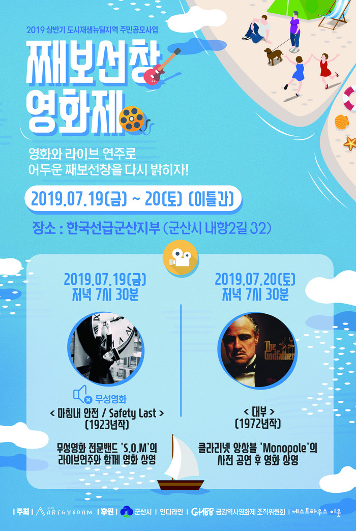 전북 군산시는 상반기 중앙동 도시재생뉴딜 주민공모사업의 일환으로 오는 19일부터 20일(저녁 7시 30분)까지 한국선급 주차장 앞 특설무대에서 “째보선창 영화제”를 개최한다.