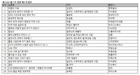 [로컬세계 길도원 기자]예스24는 5월 1주 종합 베스트셀러에서는 작가 김영하가 오랜 시간 여행을 하면서 느끼고 생각했던 것들을 아홉 가지의 이야기로 풀어낸 산문 '여행의 이유'가 3주 연속 1위로 흥행을 이어가고 있다고 2일 밝혔다.