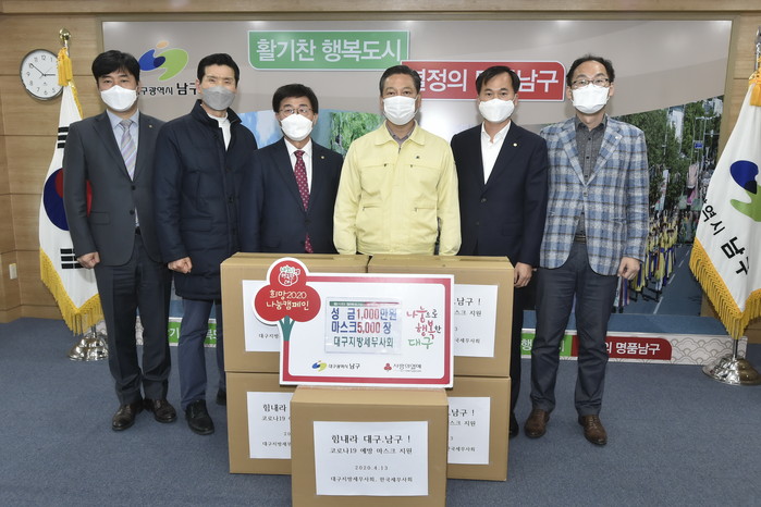 [로컬세계 박세환 기자]대구 남구는 지난 13일, 대구지방세무사회(회장 구광회)에서 코로나19 극복을 위해 성금 1000만원과 마스크 5000장을 전달했다고 14일 밝혔다.