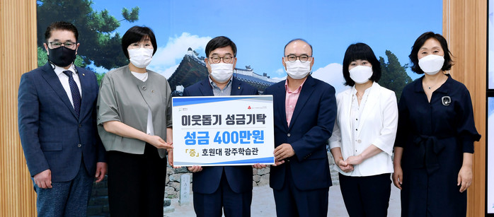 [로컬세계 김병민 기자]호원대학교 광주학습관은 지난 11일 광주시청을 방문해 어려운 이웃을 위해 사용해 달라며 성금 400만원을 기탁했다.