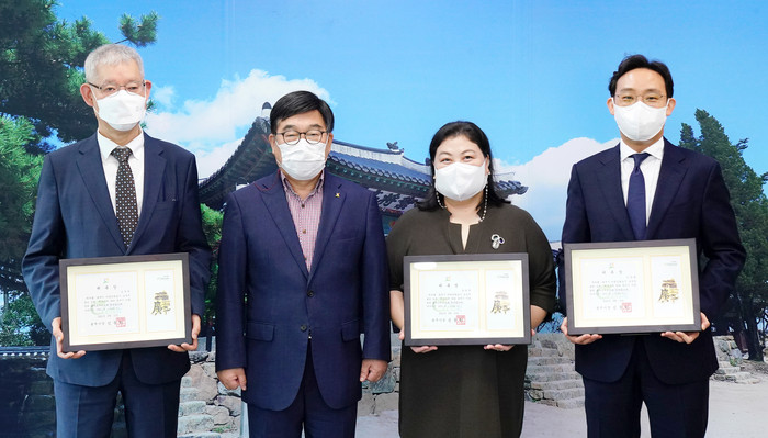 | ▲지난 12일 신동헌 시장(왼쪽에서 두번째)이 아동권리 전문가 3명에게 ‘아동권리 옴부즈 퍼슨’으로 위촉장을 수여하고 기념촬영을 하고 있다. 광주시 제공 |