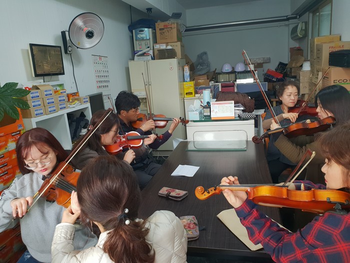 ▲동네문화카페 배달강좌바이올린-셀프24시무인빨래방.(군산시 제공) |