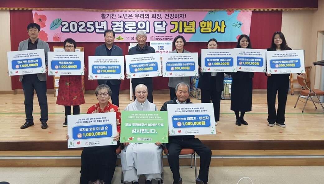 주요 후원처로는 재구개인택시 의성향우회, 한전의성군위지사, NH농협은행 의성군지부, 국민건강보험공단 의성군위지사, 의성노인복지관 회원 등이 포함됐다.