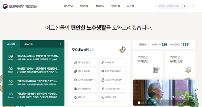 신청은 읍면동 행정복지센터나 국민연금공단 지사를 통해 접수하면 되고, 몸이 불편한 경우 ’기초연금 찾아가는 서비스(1355)‘를 신청할 수 있다.