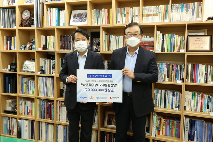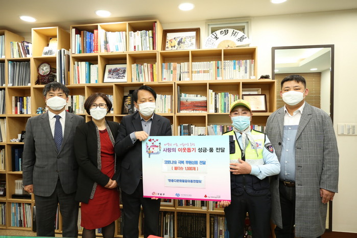 (주)링네트(대표 이주석)가 저소득 취약계층의 온라인 교육을 위한 노트북 60대, (주)넥스젠바이오텍(대표 이선교)이 손세정제 2만5,000개, 그린창호산업(대표 이창우)이 백미 10kg 200포, 한중다문화깔끔이총연합회(회장 김영희)가 물티슈 1,500개를 구로구에 기탁했다.