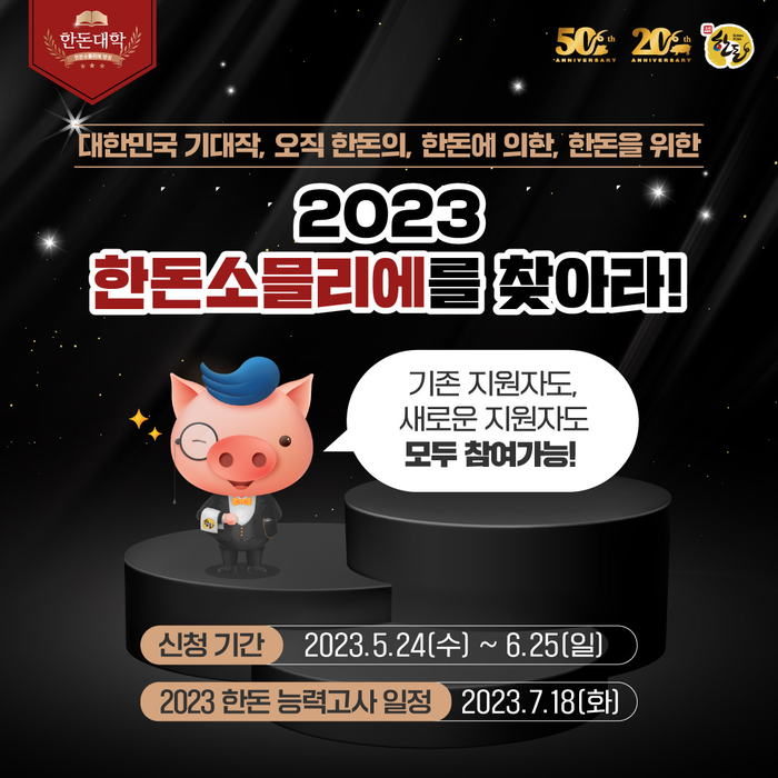 특히 이번 회차는 한돈자조금 창립 20주년·대한한돈협회 태동 50주년을 맞아 신규 한돈소믈리에 자격증 취득 과정은 물론, 기존 자격증 소지자 대상 최고의 한돈소믈리에를 선정하는 ‘한돈 능력고사’ 대회를 진행, 다가오는 한돈 페스타 행사 현장에서 개최될 예정이다.