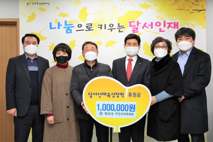 또 월성1동 주민자치위원회는 2013년에도 달서인재육성장학재단에 50만원의 후원금을 전달한 바 있다.