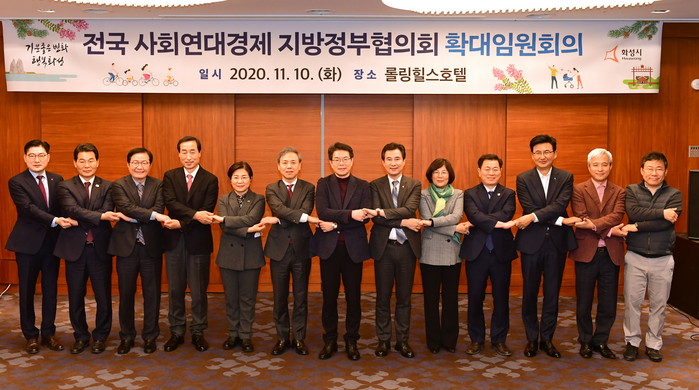 ▲전국사회연대경제 지방정부협의회가 지난 10일 화성시 롤링힐스에서 확대임원회의를 갖고 ‘사회적경제 3법’ 제정 촉구에 나섰다. (화성시 제공) |