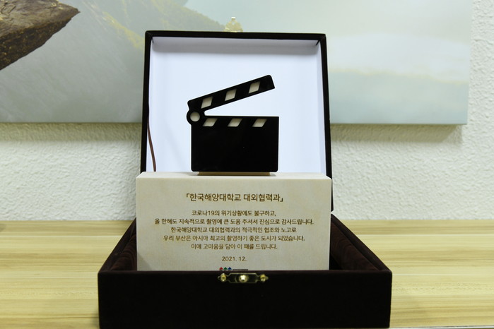 [로컬세계 맹화찬 기자]한국해양대학교(총장 도덕희)는 부산영상위원회로부터 영화·드라마 촬영에 적극적인 협조로 영화의 도시 부산의 이미지 제고에 기여한 공로로 감사패를 전달받았다고 21일 밝혔다.
