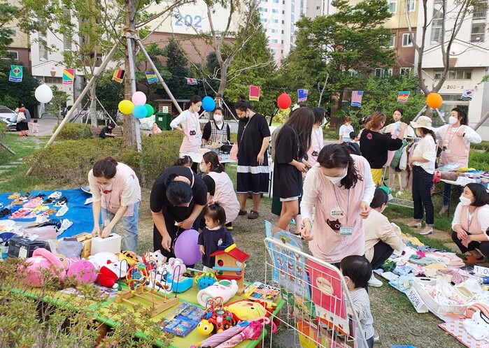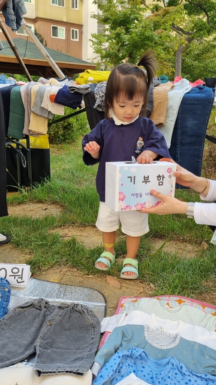 부영그룹이 지원하는 ‘부산신호 2차 부영 사랑으로 어린이집’이 아나바다 나눔 장터를 통한 수익금을 소양무지개동산 보육원에 전달했다.