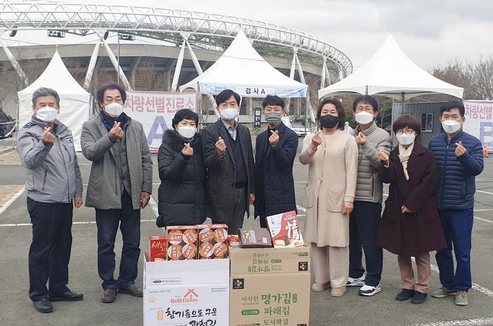 [로컬세계 박세환 기자]대구 수성구 고산지구대 생활안전협의회(위원장 홍익표)는 지난 24일 대구스타디움 제3주차장에 설치된 임시 선별진료소를 방문해 주말 없이 장기간 고생하고 있는 의료진과 수성구보건소 직원을 위해 컵라면 등 간식을 전달했다.