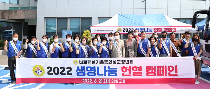 [로컬세계=박상진 기자]경북 바르게살기운동의성군협의회, 바르게살기운동의성군청년회는 지난 21일 군청 전정에서 코로나19 사태로 인한 혈액의 안정적 수급과 헌혈문화의 확산에 기여하고자 ‘2022 생명나눔 헌혈 캠페인’을 실시해 훈훈한 미담이 되고 있다.