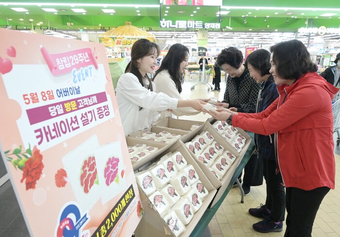 29주년을 맞은 농협유통 하나로마트는 가정의 달을 맞아 매장 방문 고객 대상으로 사은품 증정과 체험 이벤트를 벌인다. 어버이날인 8일에는 양재점에서 카네이션 떡을, 흑석·청담·월계점에서는 화분을 증정한다.