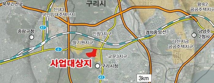 [로컬세계 고기훈 기자]경기도는 정부의 신규 공공택지 추진계획 일부인 ‘구리교문 공공주택지구’ 사업이 예정된 구리시 교문동 일원 0.1㎢를 오는 10월 3일부터 2024년 9월 30일까지 토지거래허가구역으로 지정했다.
