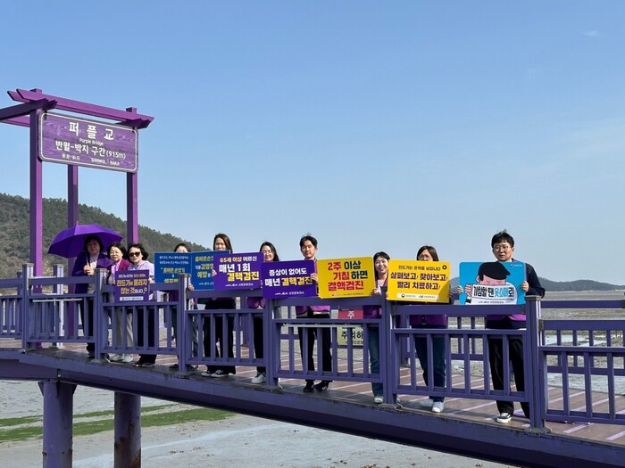 ▲지난 18일, 안좌 퍼플교에서 결핵 예방 주간 홍보 캠페인을 하고 있다. |