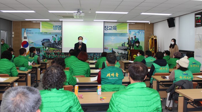 이날 교육은 기후위기 및 탄소중립 실현과 생명운동의 저변확대를 위한 국민적 참여 및 실천행동을 이끌 새마을지도자 육성으로, 전문 강사진이 참여형 교육 형태로 진행해 지역중심 탄소중립 실천계획 수립 및 활동을 위한 핵심인재 양성을 위해 탄소중립의 필요성 및 실천사례, 분임토의를 통한 실천계획 수립·발표의 순으로 진행됐다.