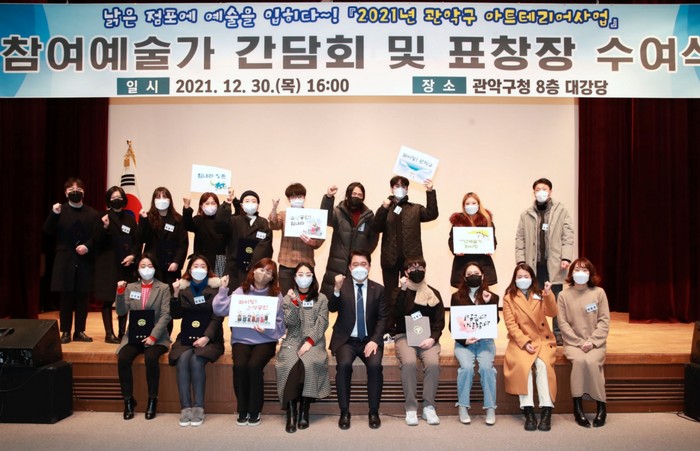 [로컬세계 임종환 기자]서울 관악구(구청장 박준희)가 2021년 아트테리어 사업을 성공적으로 마무리하며, 지난 12월 30일 사업에 성실히 참여한 예술가들에게 감사의 마음을 담아 표창장을 전달했다.