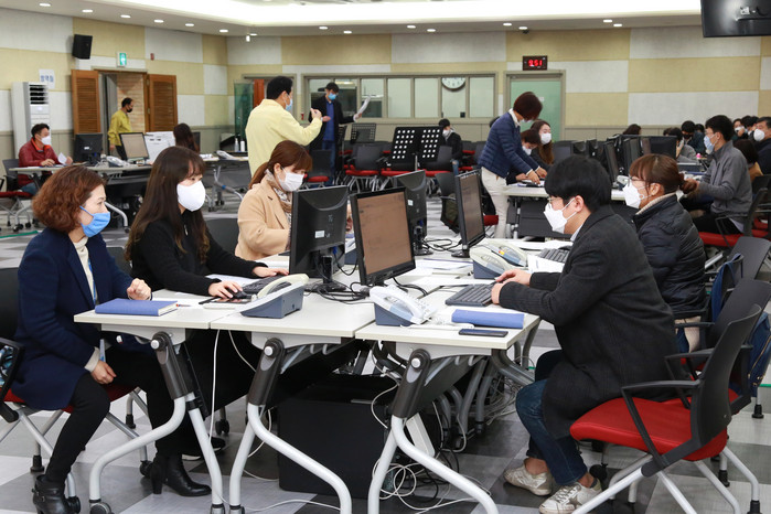 비상근무조직은 김진웅 위생과장을 총괄책임으로 △선별진료소 운영팀 △확진자 관리팀 △접촉자 자가 격리팀 △전화상담팀 △방역팀 등 8개팀을 편성해 기존 보건소 직원 10명과 각 부서에서 투입된 55명을 합쳐 총65명으로 구청 구민홀(민방위교육장)에 임시 사무실을 만들어 근무하게 된다.