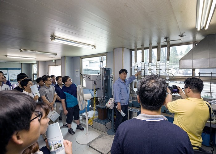| ▲공사감독자들이 재생아스콘 생산공정을 살펴보고 있다. |