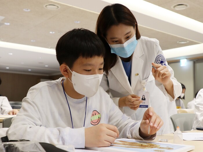 또한 이번 직업체험에서는 사춘기 전후로 빈발하는 척추옆굽음증(척추측만증)에 대한 검사도 이뤄졌다. 건강보험심사평가원 자료에 따르면 2021년 전체 척추옆굽음증 환자 중 10대의 비율은 약 41.6%에 달할 정도로 매우 큰 비중을 차지한다. 이에 의료진들은 직접 학생들의 척추 위치를 확인하며 배열을 살피고 어깨와 골반의 균형을 점검하는 등 올바른 성장과 건강 증진에 힘썼다.