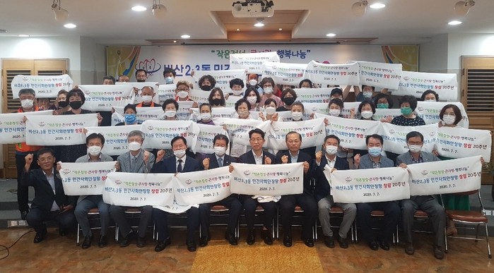 [로컬세계 박세환 기자]대구시 서구 비산2.3동 민간사회안전망추진위원회(위원장 장태훈)은 지난 7일 비산새마을금고 회의실에서 초청내빈과 주민 등 50여 명이 참석해 창립 20주년 기념식 및 후원물품 전달 행사를 가졌다.