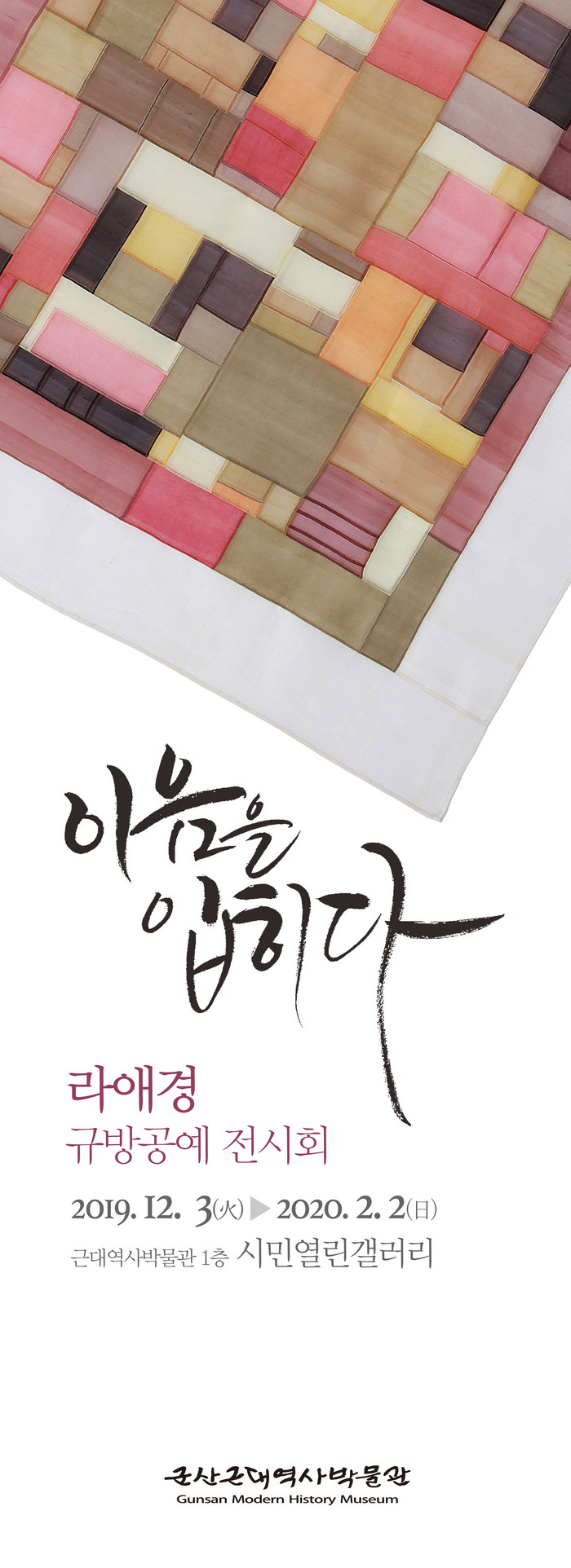 오는 12월 3일부터 진행되는 이번 전시는 군산 시민들에게 박물관 내 전시공간을 지원해 시민과 만들어가는 박물관을 도모하고, 군산시의 수준 높은 문화예술을 홍보하고자 마련됐다.