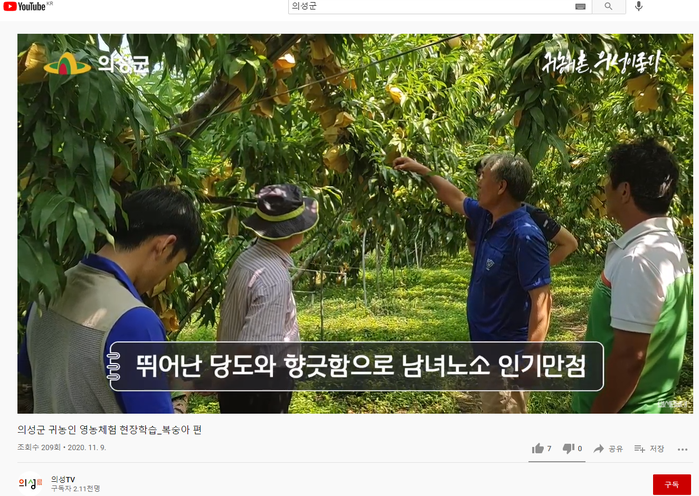 품목별 재배기술, 농업현장의 애로점 등을 동영상으로 제작, 유튜브 채널(의성군농업기술센터)에 게시해 농업인 누구나 쉽게 교육받을 수 있도록 하고 있으며, 교육시간은 인정되지 않는다.