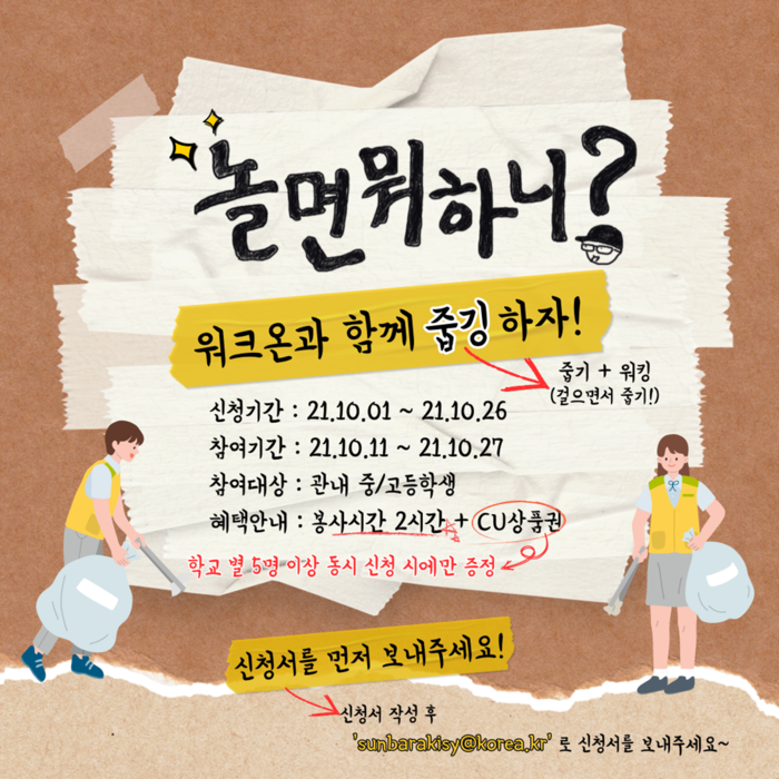 더불어 청소년들을 위한 ‘놀면 뭐하니? 워크온과 함께 줍깅 하자! 마일리지 챌리지를 11일부터 27일까지 17일간 운영한다.