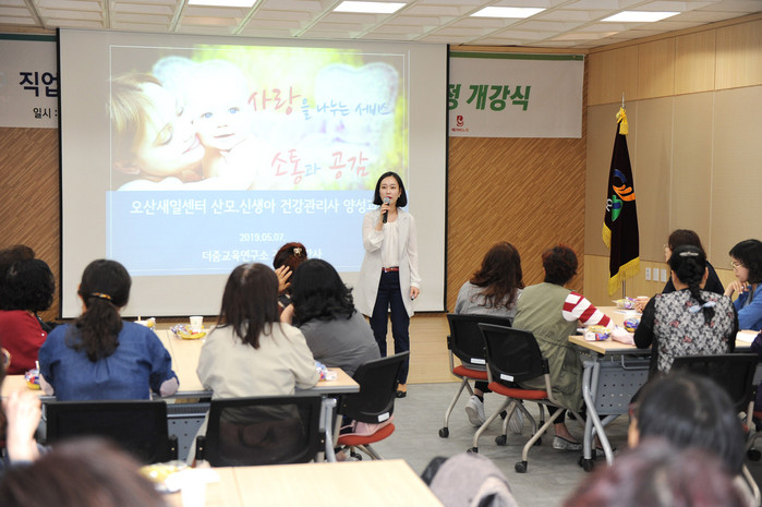 | ▲오산시 오산여성새로일하기센터는 지난 7일 오산고용복지플러스센터 대회의실에서 ‘산모신생아 건강관리사 양성과정’ 개강식을 개최했다.(오산시 제공) |
