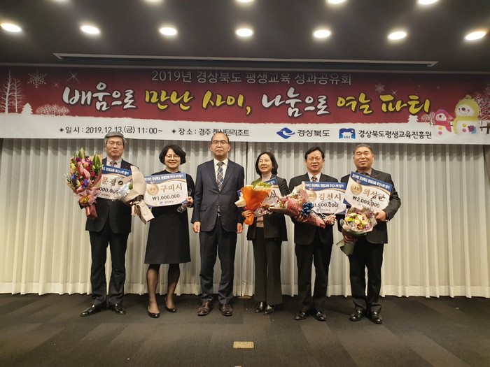 시상식은 13일 경주 켄싱턴 리조트에서 개최된 ‘21019 경상북도 평생교육 성과공유회’에서 열렸고, 이날 성과공유회에는 도내 시군 평생교육관계자 200여 명이 참석해 우수사례를 공유하고 2020년 사업계획 토론도 함께 진행했다.