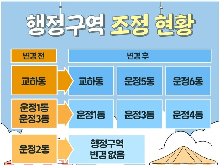 [로컬세계 = 이영원 기자]경기 파주시(시장 김경일)는 2023년 1월 1일부로 교하동과 운정신도시의 행정구역을 새롭게 개편했다.