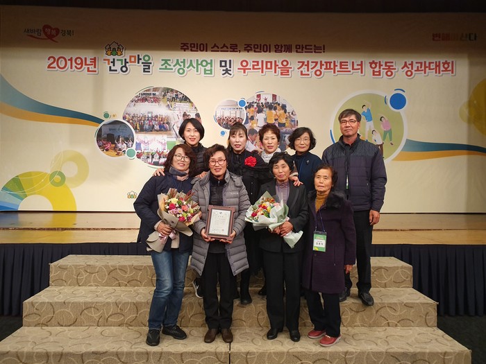 이에 지난 28일 경주에서 개최한 건강마을 조성사업 성과대회에서 우수 건강마을상을 받았다.