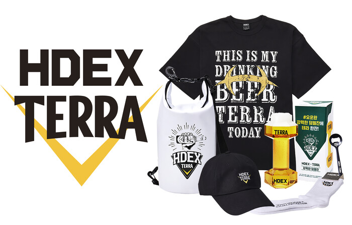 하이트진로와 에이치덱스는 협업 활동으로 두 브랜드의 특징을 잘 담아낸 한정판 굿즈 6종을 제작한다. 하이트진로는 굿즈로 액티비티 활동을 위한 티셔츠와 모자, 양말이 포함된 스포츠 의류 3종과 드라이 백을 준비했다. 또한, 테라와 함께 술자리에서 즐거움을 배가 시켜줄 덤벨 모양의 전용잔과 스페셜 블랙 스푸너를 선보인다.