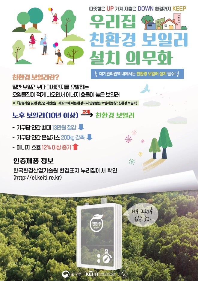 현재 김포시 등 수도권 대기관리권역 내 보일러를 교체·신규 설치하는 주택, 상가 등에서는 ‘대기관리권역의 대기환경개선에 관한 특별법’에 따라 가정용 1종(친환경)보일러를 설치해야 한다.
