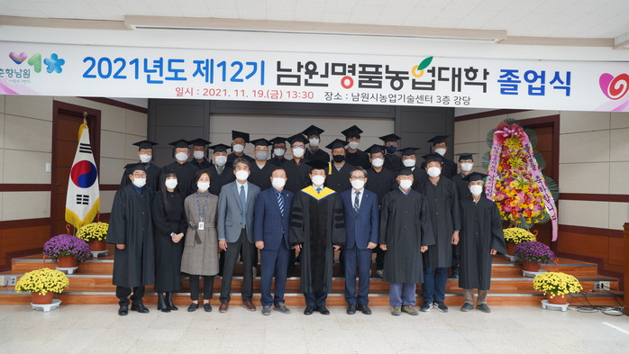 [로컬세계 이태술 기자]전북 남원시농업기술센터(소장 고인배)는 지역농업을 선도할 전문농업인육성을 목표로 명품농업대학과정을 운영해 지난 19일 졸업식을 개최했다고 22일 밝혔다.