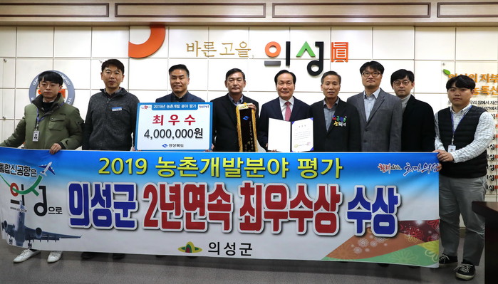| ▲의성군, 경북도 농촌개발분야 평가 ‘2년 연속 최우수상’ 수상.(의성군 제공) |