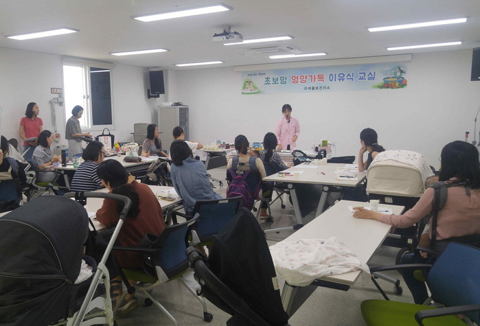 | ▲화성시 여울보건지소는 지난 26일 3층 대회의실에서 만 6개월 이하 영아 보호자 20명을 대상으로 ‘초보맘 영양가득 이유식교실’ 프로그램을 진행했다.(화성시 제공) |