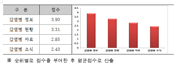 ‘가장 유용한 콘텐츠를 묻는 질문’에 대해서는 감염병 정보·현황·자료· 소식 등을 꼽았다.