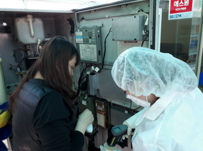 | ▲식품자동판매기 위생점검 모습.(화성시 제공) |