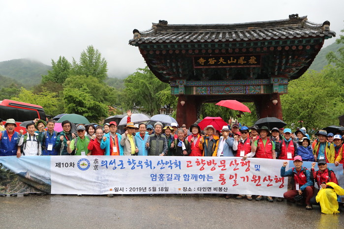 이번에 개최한 제10회 고향방문 산행 행사는 재경의성군산악회(회장 이종덕, 2009년 발족)가 주관해 2010년부터 최근까지 금성산(금성), 비봉산(다인), 청화산(구천면), 갈라산(단촌), 만경산(단밀), 갓골봉(신평), 빙계서원(가음), 곤지봉(안계), 구봉산(의성)으로 9차례 고향 명산 탐방에 이어 계획한 행사이다.
